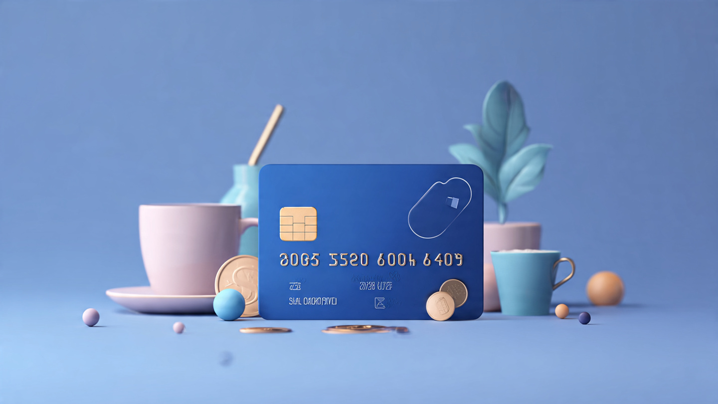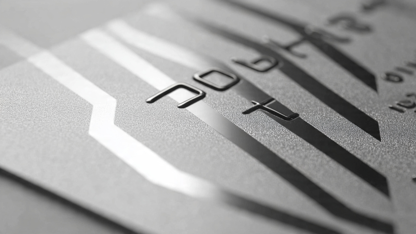 Professional credit card background with matte finish, minimal icons, clean financial branding