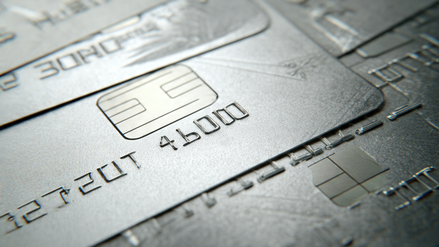 Corporate credit card background with silver tones, sharp lines, modern business aesthetic
