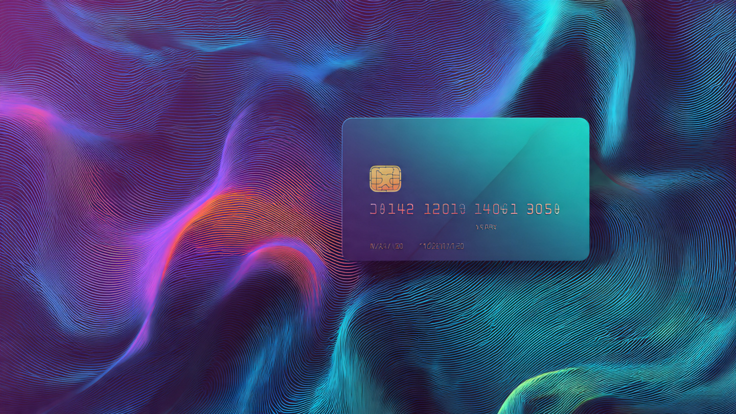Digital credit card background with abstract waves, fintech UI style, smooth gradients