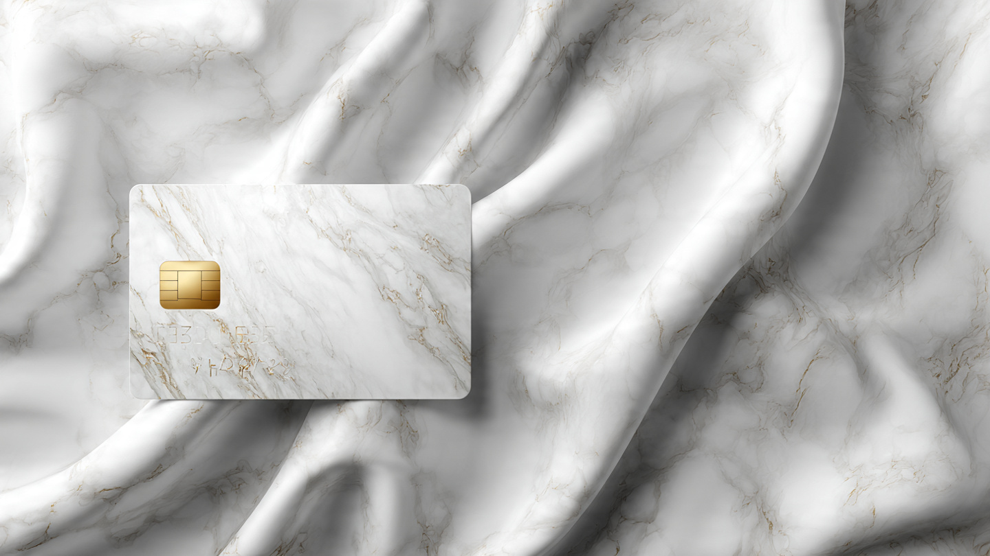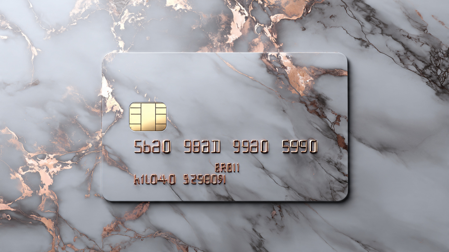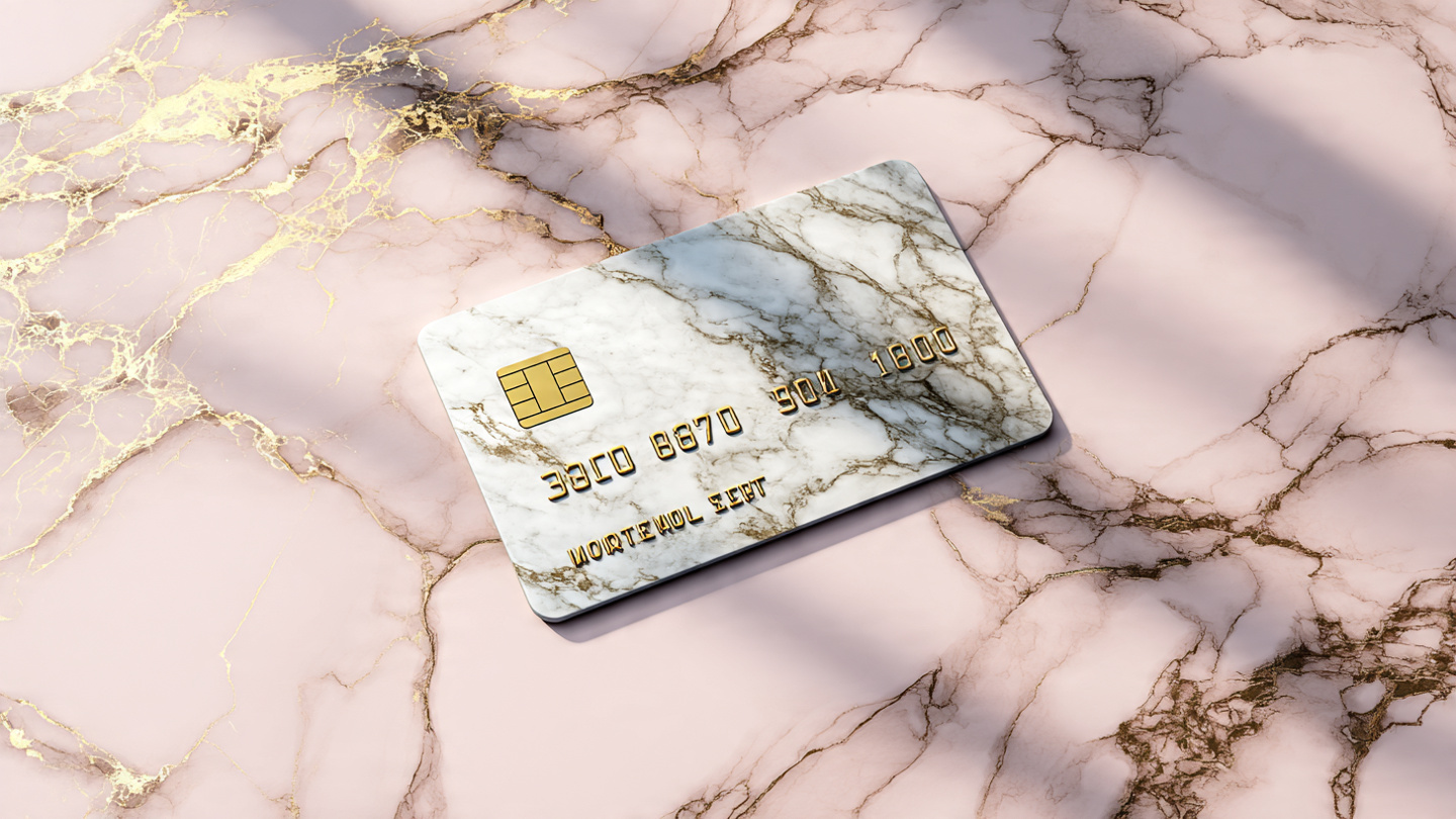 Elegant credit card background with marble texture, soft shadows, classy financial design