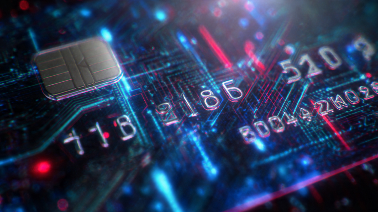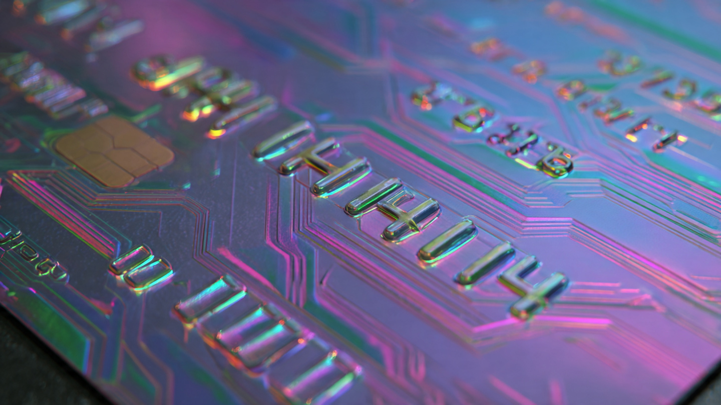 Futuristic credit card background with holographic effects, cyber security vibe, 4K resolution