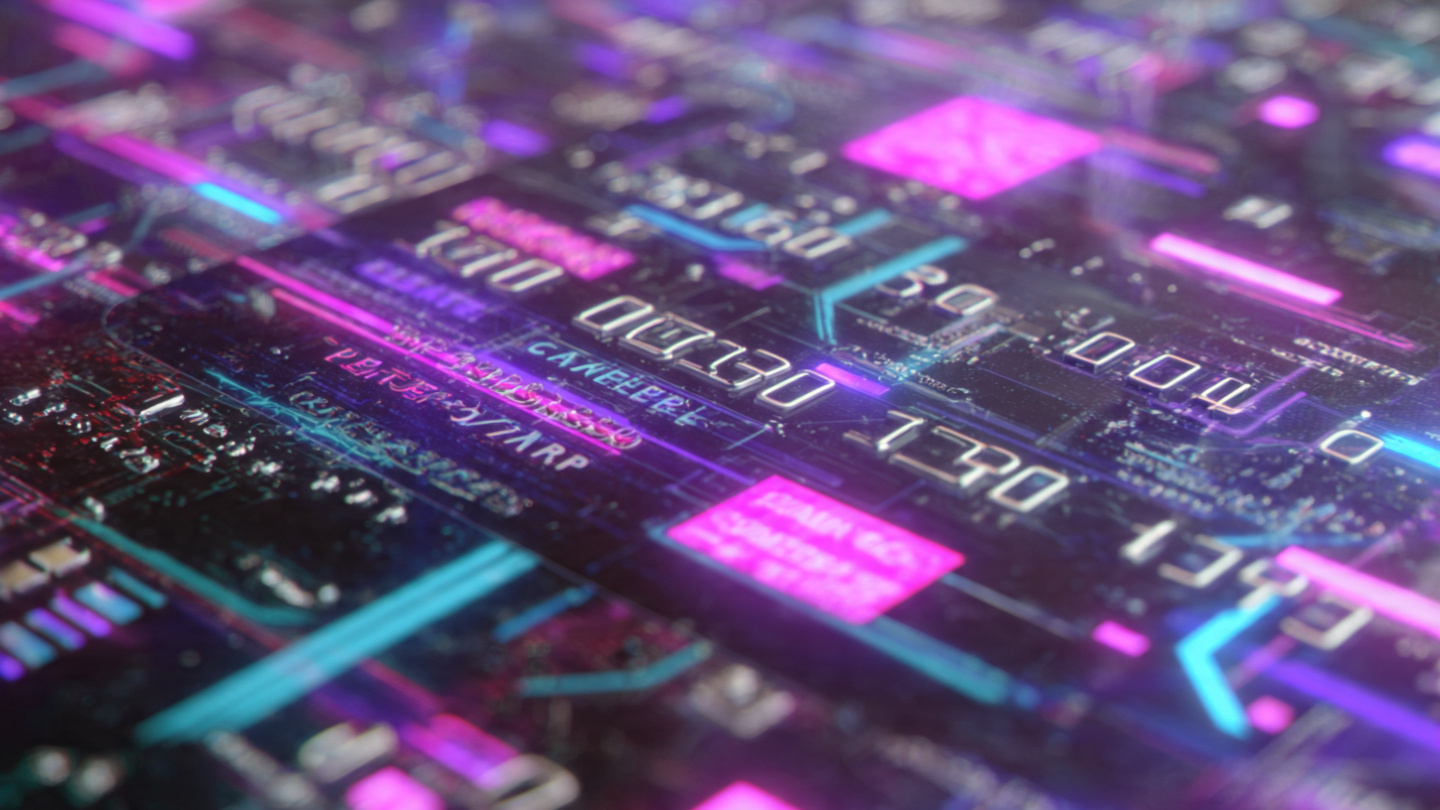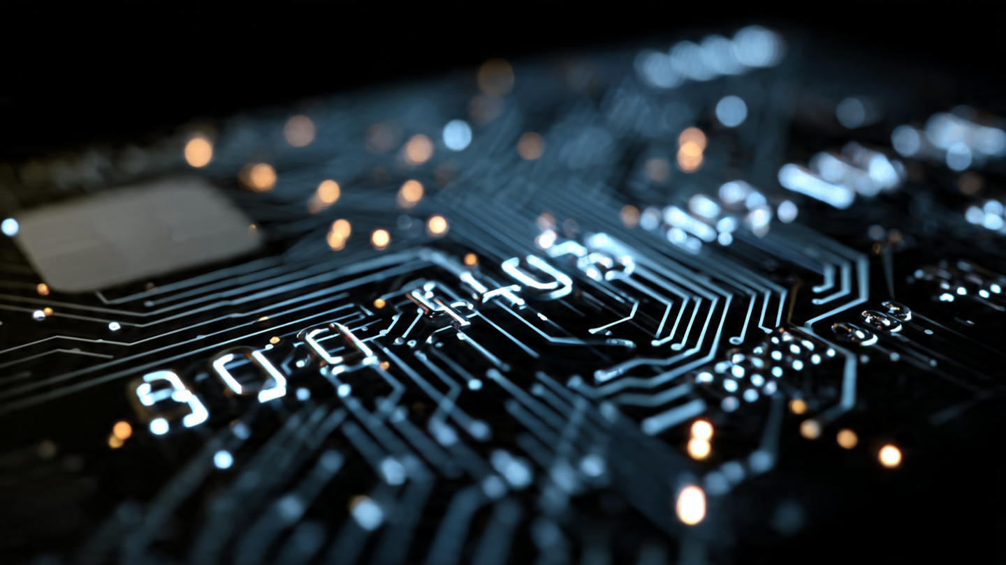 Night theme credit card background with glowing circuit patterns, technology inspired design
