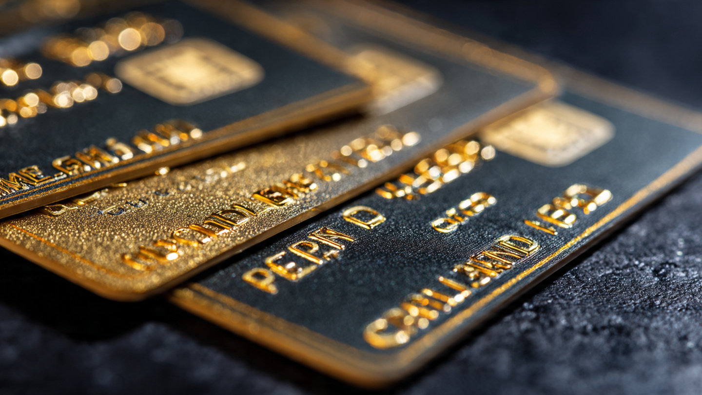 Luxury credit card background with gold and black theme, soft light reflections, high quality