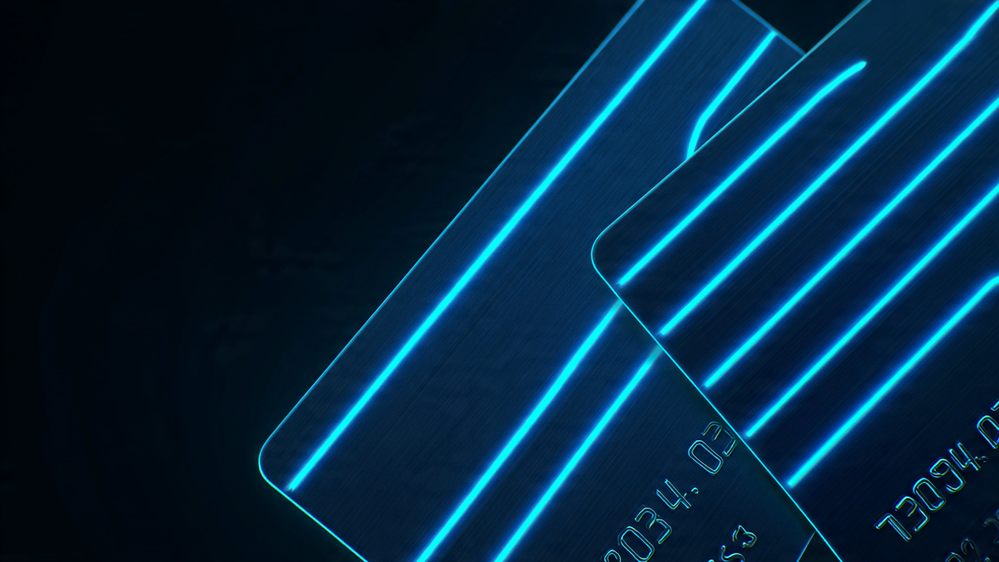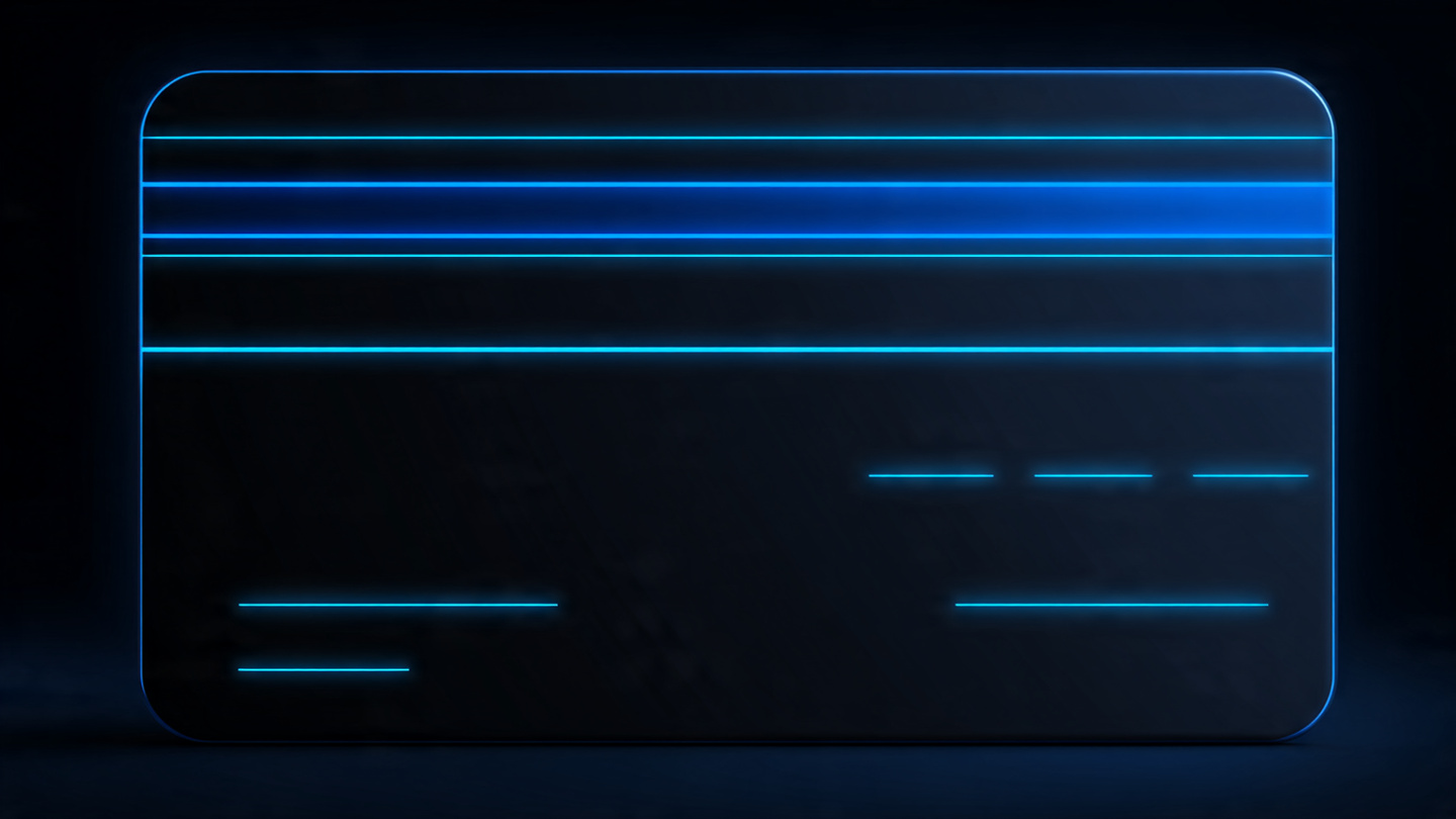 Minimal credit card background with blue neon lines, clean design, professional banking look