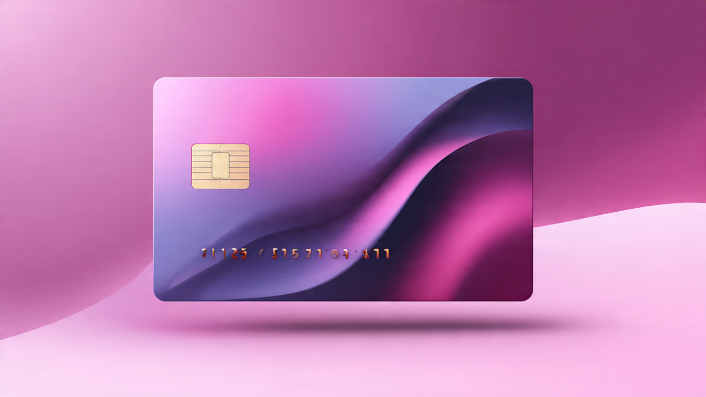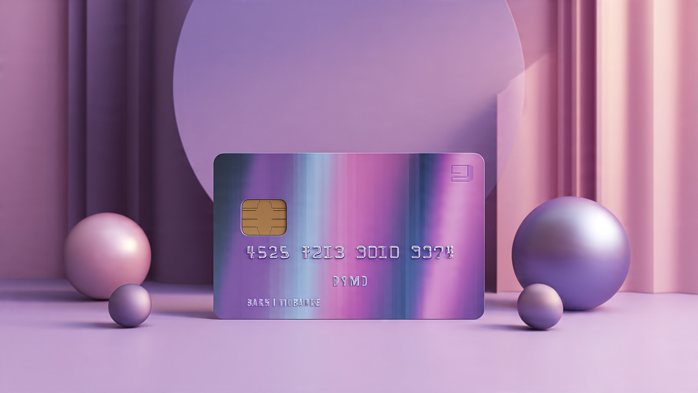 Stylish credit card background with purple and pink gradient, modern payment concept